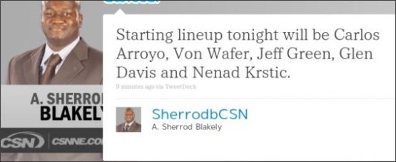 Twitter / A. Sherrod Blakely: Starting lineup tonight wi … via kwout Like Chuck said in the preview… let's feed…