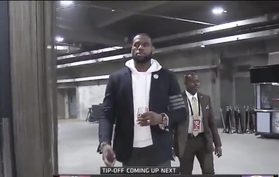 Watch: LeBron James casually strolls into Staples Center holding glass of wine before game