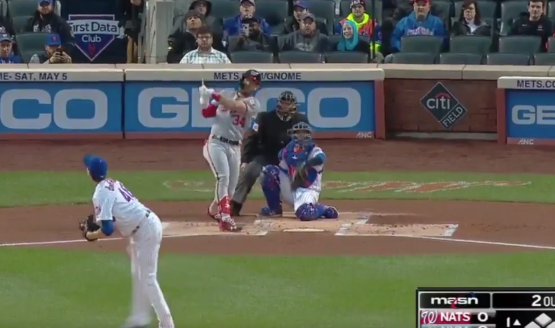 Nationals slugger Bryce Harper showed just how strong he is during Monday’s game against the Mets. Harper saw a fastball…