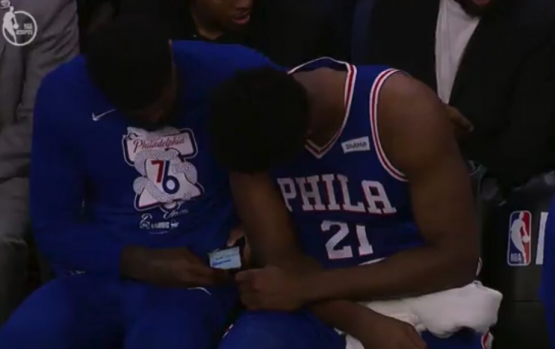 Look: Joel Embiid, Amir Johnson caught checking cell phone during playoff game
