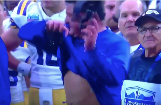 Look: Angry Ed Orgeron destroys headset during Fiesta Bowl