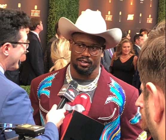 Watch Von Miller turn heads with eccentric suit, cowboy hat at NFL Honors red carpet