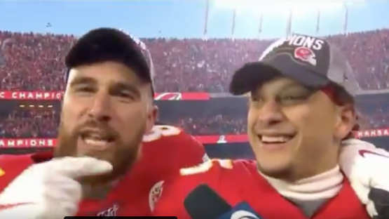 Travis Kelce interrupts Patrick Mahomes’ postgame interview with F-bomb (Video)
