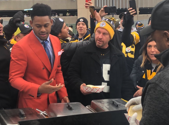 Look: JuJu Smith-Schuster tailgates, eats hot dogs with Steelers fans before Patriots game