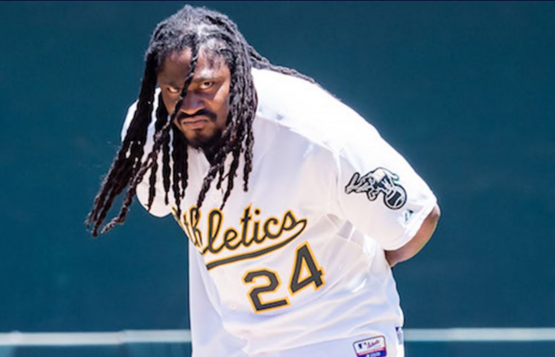 Marshawn Lynch throws out first pitch at A’s game (VIDEO)
