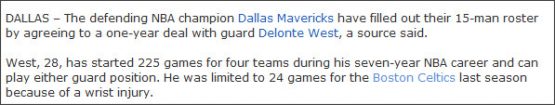 Mavs, Delonte West agree to 1-year deal – Dallas Mavericks Blog – ESPN Dallas via kwout I know a lot…