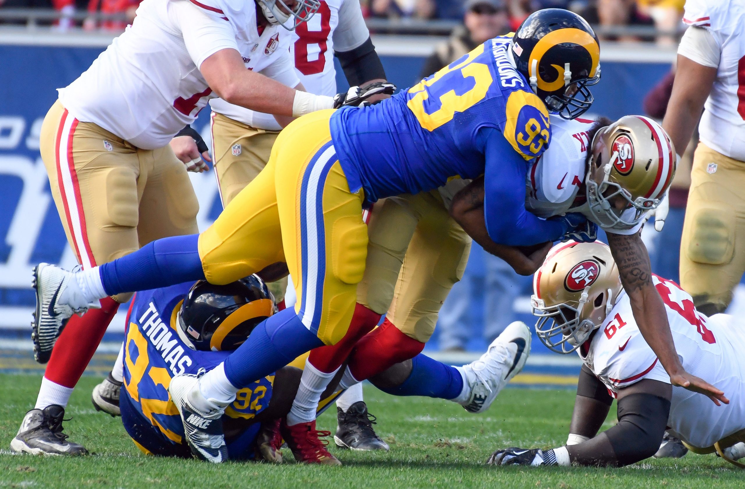<![CDATA[Ethan Westbrooks, whose biggest claim to fame had been the defensive lineman the Los Angeles Rams chose to keep over Michael Sam in 2014, was arrested Sunday on suspicion of domestic violence.