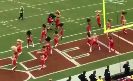 Chiefs cheerleader gets trucked by camera operator (VIDEO)