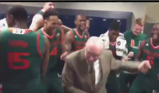 WATCH: Jim Larranaga dances in locker room after win over Virginia