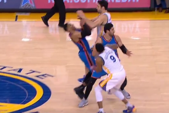 Zaza Pachulia flattens Russell Westbrook, stares him down (VIDEO)
