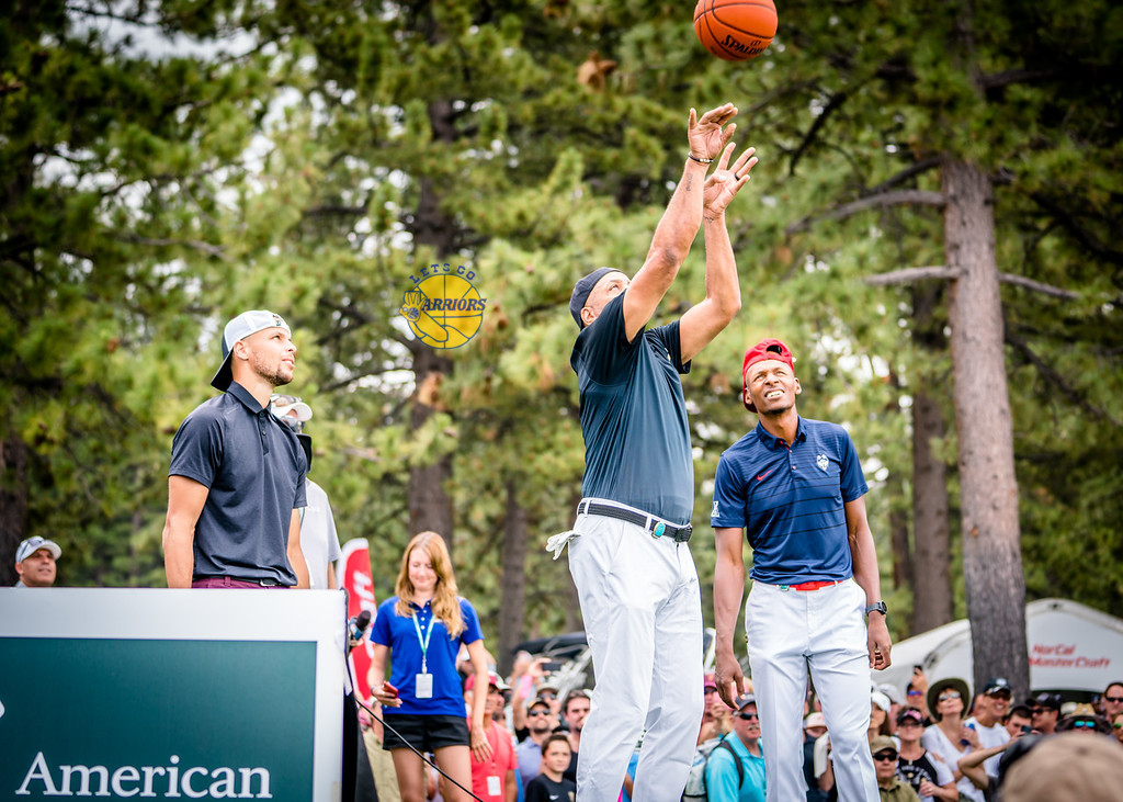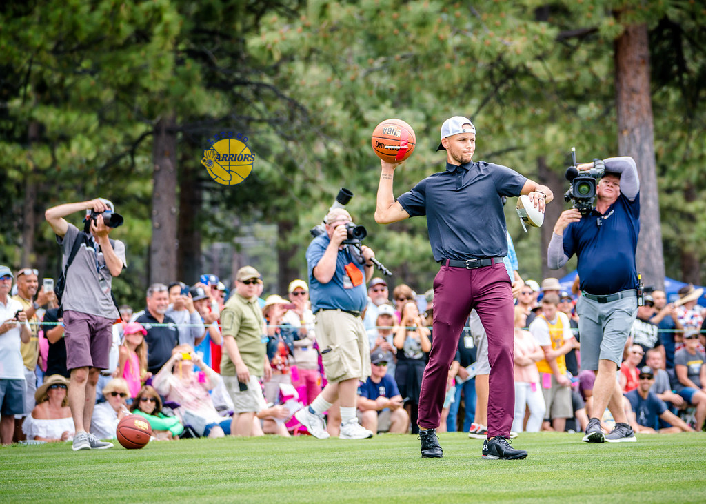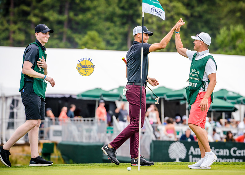 EDGEWOOD TAHOE GOLF COURSE, STATELINE, NV — Golden State Warriors superstar Stephen Curry was back on the golf course yesterday in the American Century Championship (#ACChampionship) in Lake Tahoe and finished the first round on Friday tied for 8th place: https://youtu.be/v1JQnPKg7oc