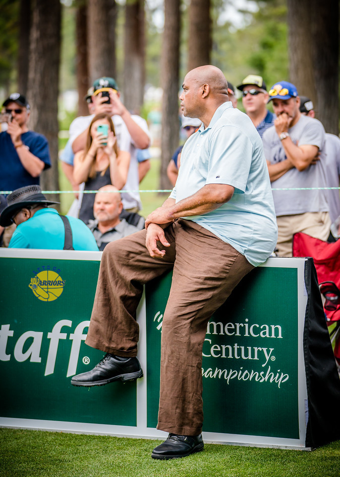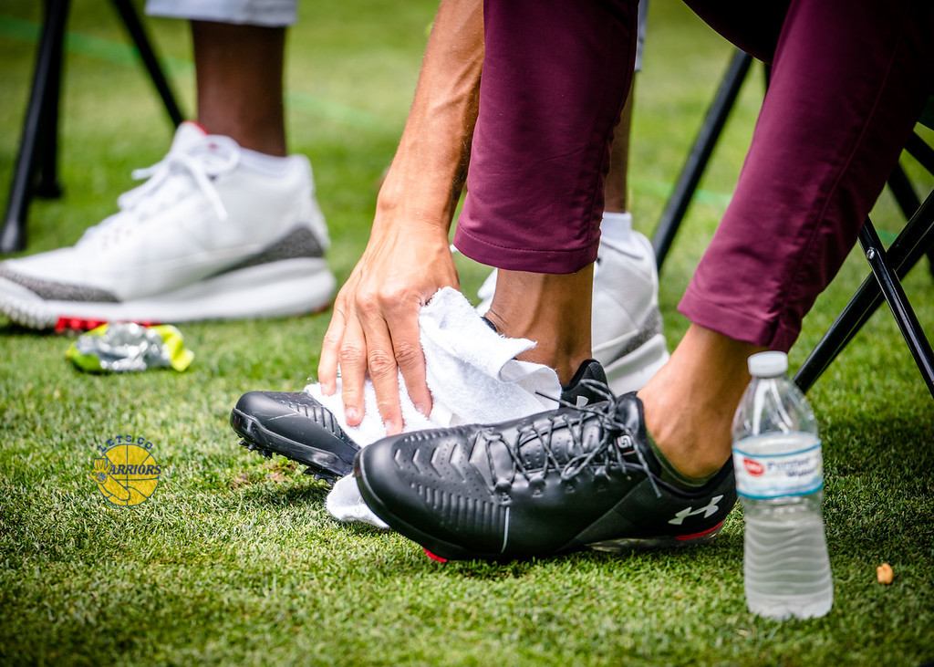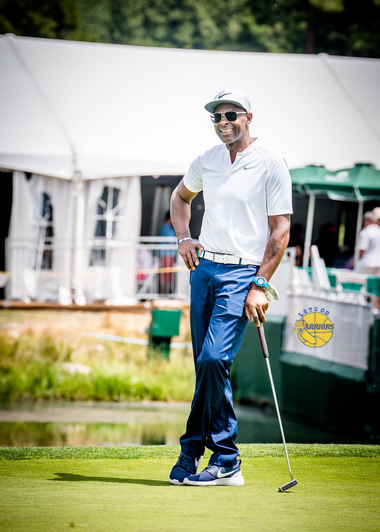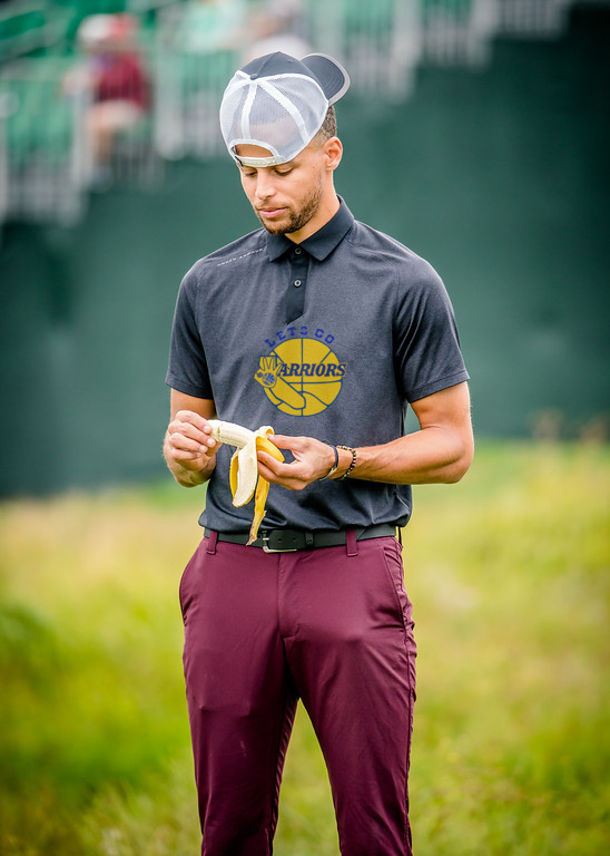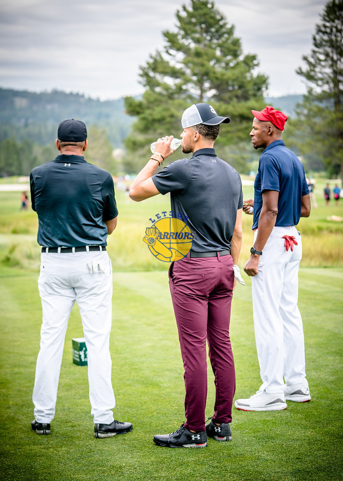 Curry started the day off in a group with his father Dell Curry as well as former NBA shooting guard and three-pointer extraordinaire Ray Allen. Also spotted: Charles Barkley, Chris Webber and Jerry Rice.