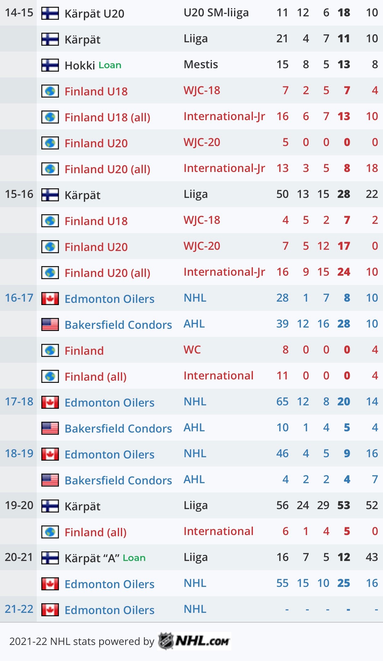 This was of course a stressful and disappointing time for everyone in the Edmonton organization. GM Cirelli, Coach McClellan, and goalie Talbot, among others would be moved on from, and this lack of confidence seemed to befall the young Finn as well, who went back to Finland for a year.