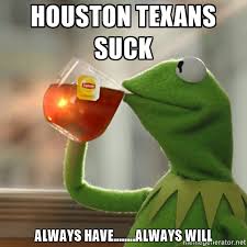 I know this much: I am sick and freaking tired of the Texans. You’re the Houston Texans. You suck. You’ve sucked for years. The only reason why you’ve ever tasted any success at all has been because you got lucky and drew the Bengals in the playoffs a couple of times. Shut up, Houston. You suck. The entire city sucks. There’s too much crime. It’s too hot. It smells. These idiots spent a bazillion dollars on Brock Turnoversweiler and have managed to become worse as an offense than the one they had under Brian freaking Hoyer. Suckitude. The only remotely good thing they have going for them are the cheerleaders, and even they are annoying as hell with their incessant ramblings about how good the team is when they are so clearly not good. Now, this doesn’t mean the cheerleaders aren’t all babes. They are easily the best looking group of cheer babes in the entire NFL. No. It just means they suck by default because of the organization they belong to. Let that be a lesson for you kids out there. Sometimes you just suck by association.